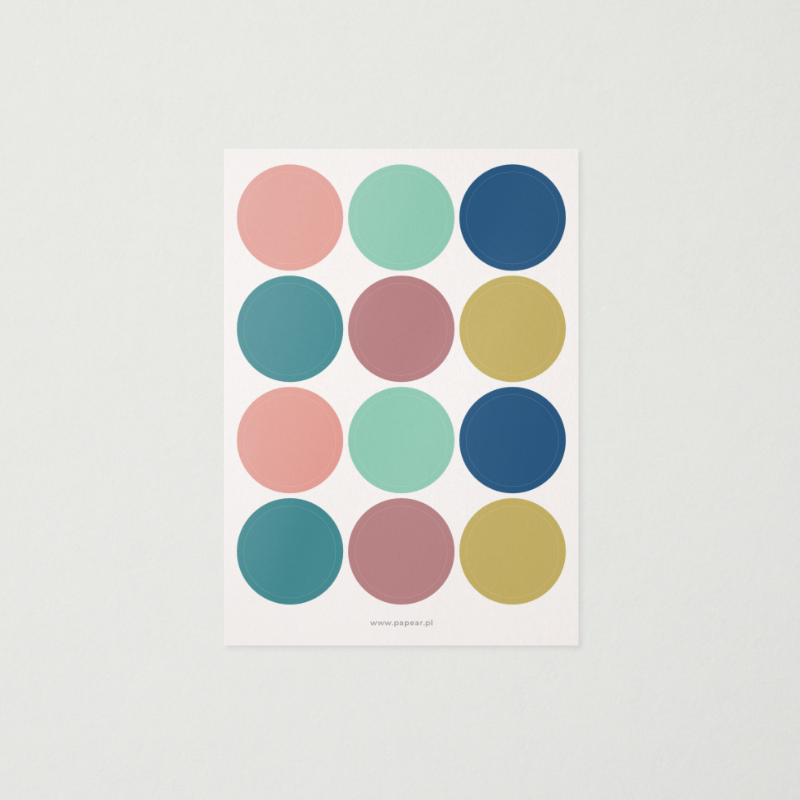 Zestaw 12 papierowych naklejek w 6 różnych kolorach. Idealne do zaklejenia koperty czy ozdobienia notesu lub paczki z prezentem. Wysoka jakość wydruku i piękny, włoski, matowy papier bezdrzewny zadowolą każdego miłośnika papierniczych drobiazgów. Naklejki mają format pocztówki, dzięki czemu sprawdzą się także jako dodatek do upominku.